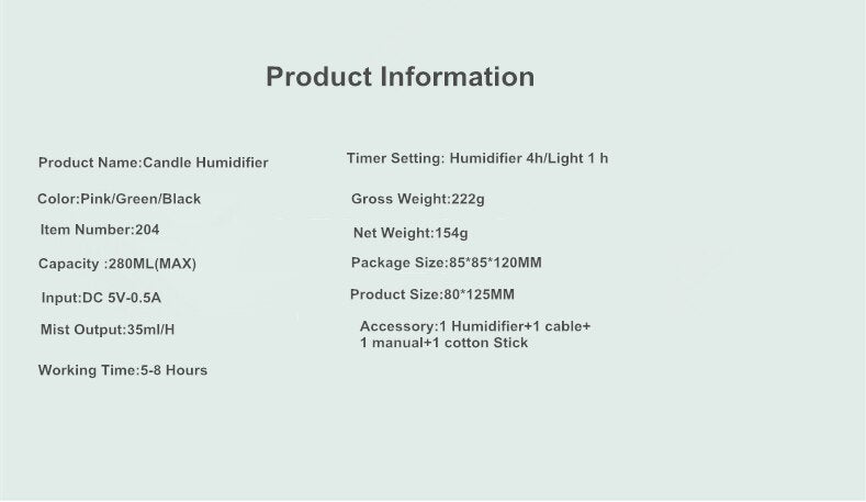 3. Small size but large capacity: 280ml, can last for 5-8 hours