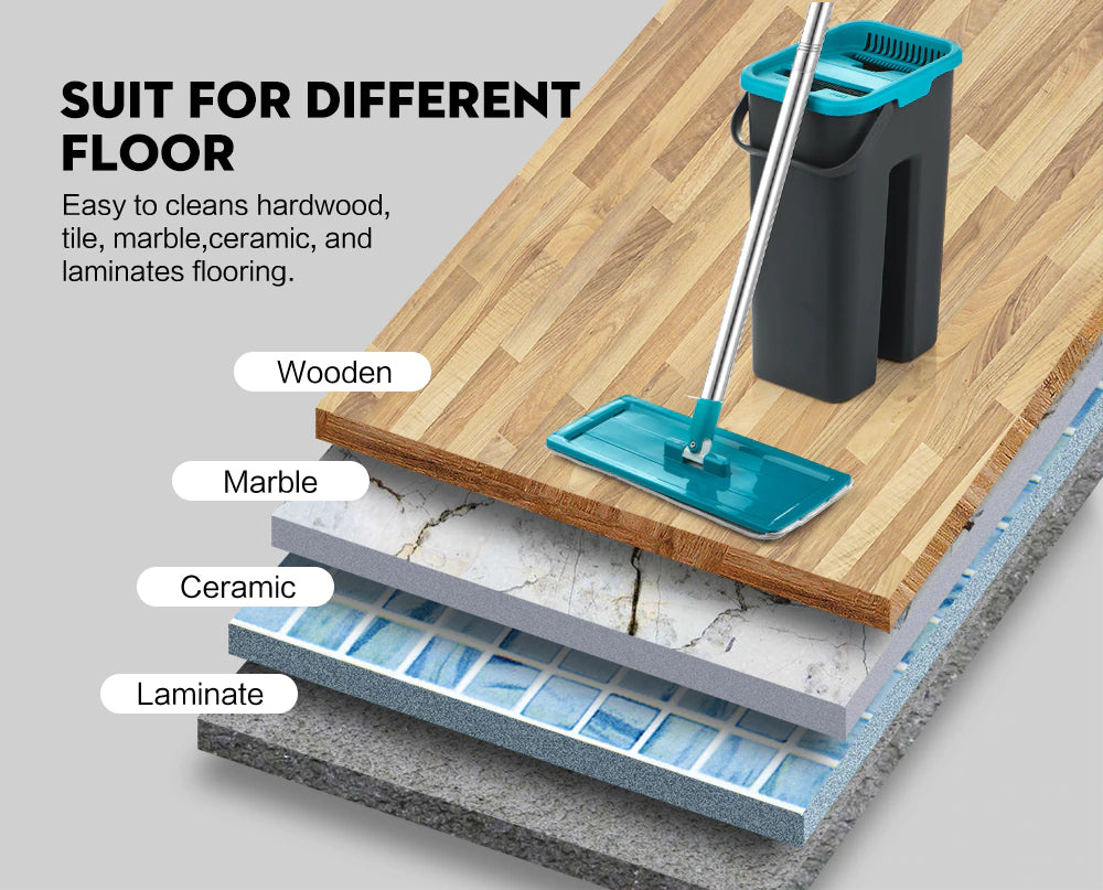 - UPGRADE 2-IN-1 DRY&WET HANDS-FREE SQUEEZE: The wood floor doesn't like water. While our bucket can get the mop dry enough to work your floors. With 2 convenient grooves for wet and dry, it only takes several seconds to wash and dry the mop. Meanwhile, dust mop bucket set can keep your hands from dirt.